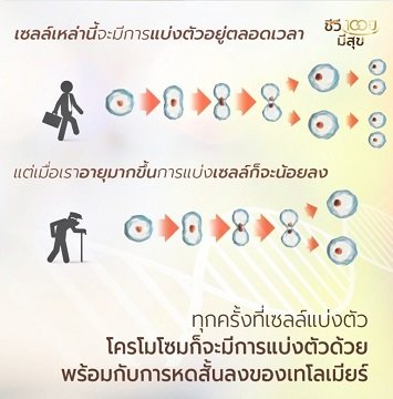 เซลล์เหล่านี้จะมีการแบ่งตัวอยู่ตลอดเวลา เมื่อเราอายุมากขึ้นการแบ่งเซลล์ก็จะน้อยลง ทุกครั้งที่เซลล์แบ่งตัวพร้อมกับการหดสั้นลงของเทโลเมียร์ โครโมโซมก็จะมีการแบ่งตัวด้วย